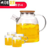 三维工匠泡茶壶玻璃可高温家用功夫茶具套装 日式大小号单烧热水蒸煮茶壶 大口1600[不锈钢盖]+4杯