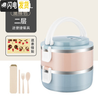 三维工匠3层保温桶多层保温饭盒分格大容量上班族手提便携304不锈钢便当盒 2层不锈钢色(双层保温)送保温袋+筷子+勺子