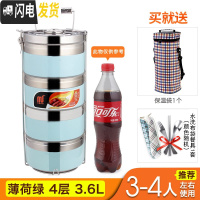 三维工匠真空保温饭盒304不锈钢多层超长保温桶餐盒分隔大容量便携便当盒 薄荷绿四层+保温袋(送餐具)
