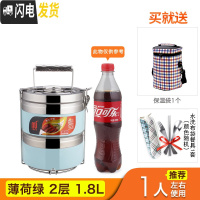 三维工匠真空保温饭盒304不锈钢多层超长保温桶餐盒分隔大容量便携便当盒 薄荷绿二层+保温袋(送餐具)