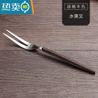敬平304不锈钢水果叉套装北欧家用甜品儿童勺子水果签果插西餐二齿叉 胡桃木色水果叉1个