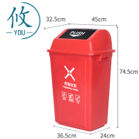 翌嘉YJ4122090 长方形夹缝翻盖分类垃圾桶 60L红色(有害垃圾)