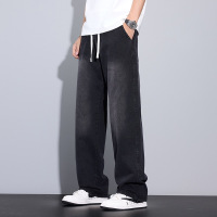男士抽绳黑灰牛仔裤直筒宽松街头潮流老爹裤大码舒适百搭男休闲裤