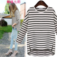 锦铭七玥M-5XL 欧美特大码女装秋季加肥加大胖MM宽松长袖条纹棉女式T恤