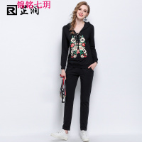 锦铭七玥欧美女装2018春装新款加肥加大胖妹妹大码女装休闲运动套装女