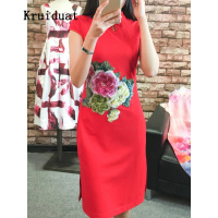 Kruidvat 奈琴尔 花朵刺绣2016欧美 短袖连衣裙改良旗袍 ML