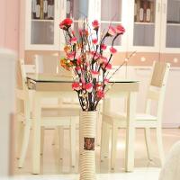 花束假花仿真花客厅摆件落地花瓶套装室内装饰花插花摆设-紫红色带藤编花瓶