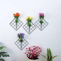创意北欧简约铁艺方形小网格墙面装饰品照片墙室内仿真花束假花插