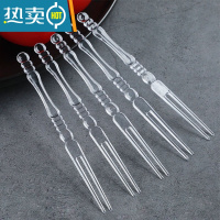 敬平家用创意玻璃透明点心果叉杯果签座水果叉不锈钢二齿小叉子果签盅 6支水果叉