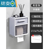 敬平卫生间纸巾盒免打孔防水壁挂式卫生纸置物架卷纸盒厕所抽纸盒 天空灰/升级款?破损补寄浴室置物架
