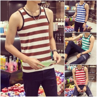 男士背心男韩版修身型横条纹紧身无袖小汗背心夏季休闲运动潮流