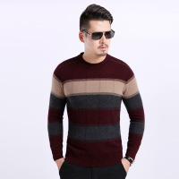 秋冬新款男士羊绒衫套头圆领横条纹毛衣羊毛衫加厚保暖