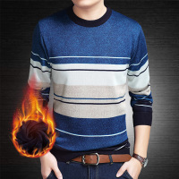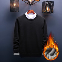 冬季新款男式毛衣圆领针织衫加绒加厚青年打底衫保暖韩版休闲男装