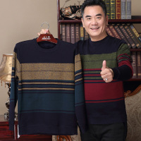 冬季加绒加厚针织衫男士圆领套头毛衣中老年爸爸装保暖上衣打底衫