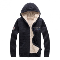 2017冬季中老年男士加绒加厚羊绒衫带帽针织羊毛衫毛衣男爸爸装