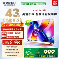 创维酷开43英寸电视K3 AI远场语音 一级能效 多重健康护眼 智能便捷投屏 高清全面屏电视机 43P3F Pro