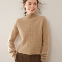 秋冬新款软糯山羊绒衫女半高领加厚纯色绞花宽松显瘦针织打底毛衣