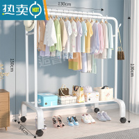 敬平晾衣架落地家用晒衣架阳台卧室挂衣架子室内简易双杆式衣帽架 烤漆白☯双杆单层110cm☯4帽钩+4轮 大