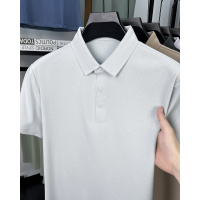 2024年新款桑蚕丝男士夏季短袖商务休闲条纹真丝翻领Polo衫 T恤
