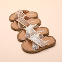 女童交叉带串珠休闲凉拖鞋2026夏季公主鞋韩版居家外穿凉拖鞋