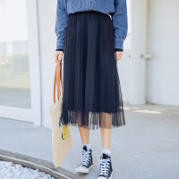 珂依舍2018春夏装新款半身裙高腰韩版气质百搭a字裙纯色网纱百褶裙子