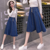 顺崇2018夏新款韩版牛仔裙半身裙女高腰显瘦大码a字裙百褶裙短裙子