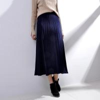 衣姣人(YIJIAOREN)女装复古港味韩版chic风高腰显瘦钻石绒金色百褶裙半身裙女潮金色均码