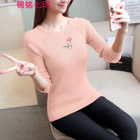锦铭七玥心梦缘春夏季毛衣女玫瑰花刺绣 圆领学生长袖包芯纱针织衫打底衫