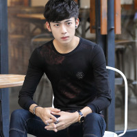 男士长袖T恤圆领秋季学生玫瑰上衣青年韩版修身打底衫潮流卫衣男