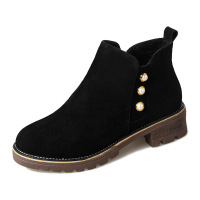 2017新款靴子女短靴2017秋冬季新款中跟厚底侧拉链及踝靴百搭时尚女靴女鞋
