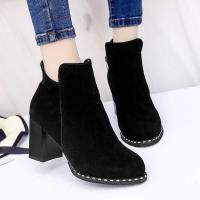 2017新款2017秋季新款韩版短靴女高跟粗跟女靴皮靴及踝靴裸靴百搭女鞋子潮
