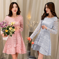 莞馨(wanxin)2016秋季新款女装韩版圆领修身蕾丝无袖连衣裙中长款高腰镂空裙子
