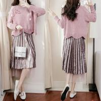 衣姣人(YIJIAOREN)女装加厚雪尼尔粗针毛衣+金丝绒拼接网纱半身裙两件套GD6813均码