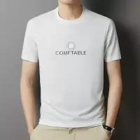 专柜桑蚕丝冰丝短袖t恤男夏季新款白色烫钻修身薄款圆领男士上衣