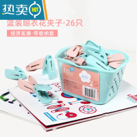 敬平夹子晾衣夹家用内衣袜子衣服蚊帐防风夹篮子塑料多功能晾晒架 J0511[蓝粉混合26只装带篮子]