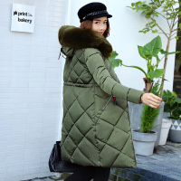 顺崇2017冬季新款加厚中长款菱形格大毛领羽绒棉服外套女潮8611