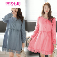 锦铭七玥厂家直销2018春装孕妇装时尚宽松长袖蕾丝棉麻拼接连衣裙孕妇裙