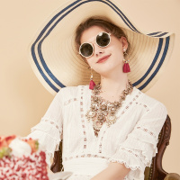 奥芝国Z 仙Z重磅级 精美马德拉镂空蕾丝棉料荷叶边塔克线连衣裙