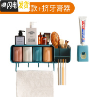 三维工匠卫生间牙刷架套装壁挂洗漱架挤牙膏免打孔置物架漱口杯牙具收纳架 四口之家+挤牙膏器