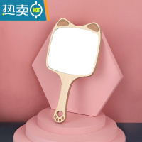 敬平可爱动物手柄镜韩式少女化妆镜创意手持镜女学生宿舍用小便携镜子便携式用镜 小浣熊手柄镜