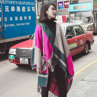 啄木鸟2024冬新款玫瑰色格子围巾女高级感仿羊绒百搭加厚保暖围脖