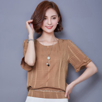 薇侣2017夏装新款大码女装蝙蝠衫短袖雪纺衫带项链