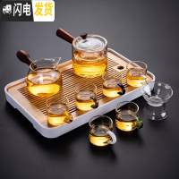 三维工匠透明玻璃茶具套装家用简约办公室会客现代泡茶壶小套客厅功夫茶杯 圆擦色竹托盘+6人胆壶+白把6杯 9件