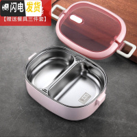 三维工匠304不锈钢饭盒学生便当盒上班族便携分隔儿童小可爱带盖分格餐盒 粉色双格
