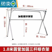 敬平晾衣架落地折叠室内外阳台伸缩不锈钢双杆 X型晒被子器凉挂衣杆 加粗钢管+1.8米三杆[30风勾]免 安装+可折叠