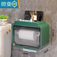 敬平卫生间纸巾盒防水免打孔厕所抽纸盒洗手间壁挂卫生纸置物架厕纸盒 绿色双层[无痕悬挂/顶部置物]