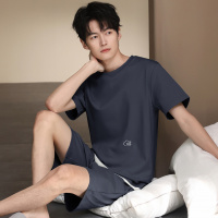 夏季纯棉短袖短裤两件套套装男士纯色宽松舒适睡衣男可外穿家居服