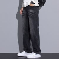 猫须纹理黑灰牛仔裤男款高街阔腿裤水洗做旧宽松直筒长裤