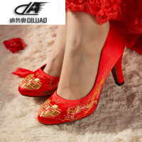 春夏新款 绣花鞋 高跟鞋 结婚双喜鞋 刺绣龙凤喜庆大红色婚鞋
