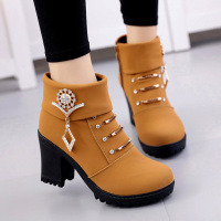 秋冬鞋女2017新款百搭防水台高跟鞋保暖加绒短靴粗跟磨砂皮女靴子